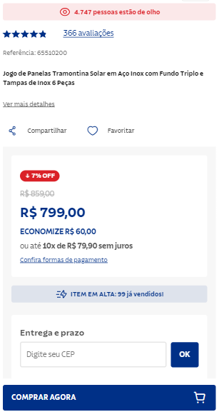 vez que o usuário entrou na loja oficial buscando comparar e encontrar motivos que o façam adquirir no site da marca e não em locais mais baratos.