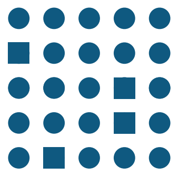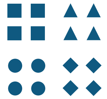 13 – Consistência: coloca ordem ao caos. É essencial no branding. No exemplo abaixo, se cada quadrado representa a mesma coisa e todos os círculos significam a mesma coisa, o caos se torna ordem.